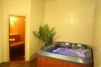 Зона отдыха с удобными диванами и столом, финская парная, ванна-джакузи, LCD-телевизор, комната отдыха, полотенца, простыни, резиновые тапочки, фен.