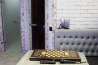 В сауне установлено современное оборудование очистки воды для комфорта и спокойствия наших гостей. Так же вы можете попеть в караоке, поставить свою любимую музыку, и попить вкусного, ароматного чая за игрой в нарды или шахматы.